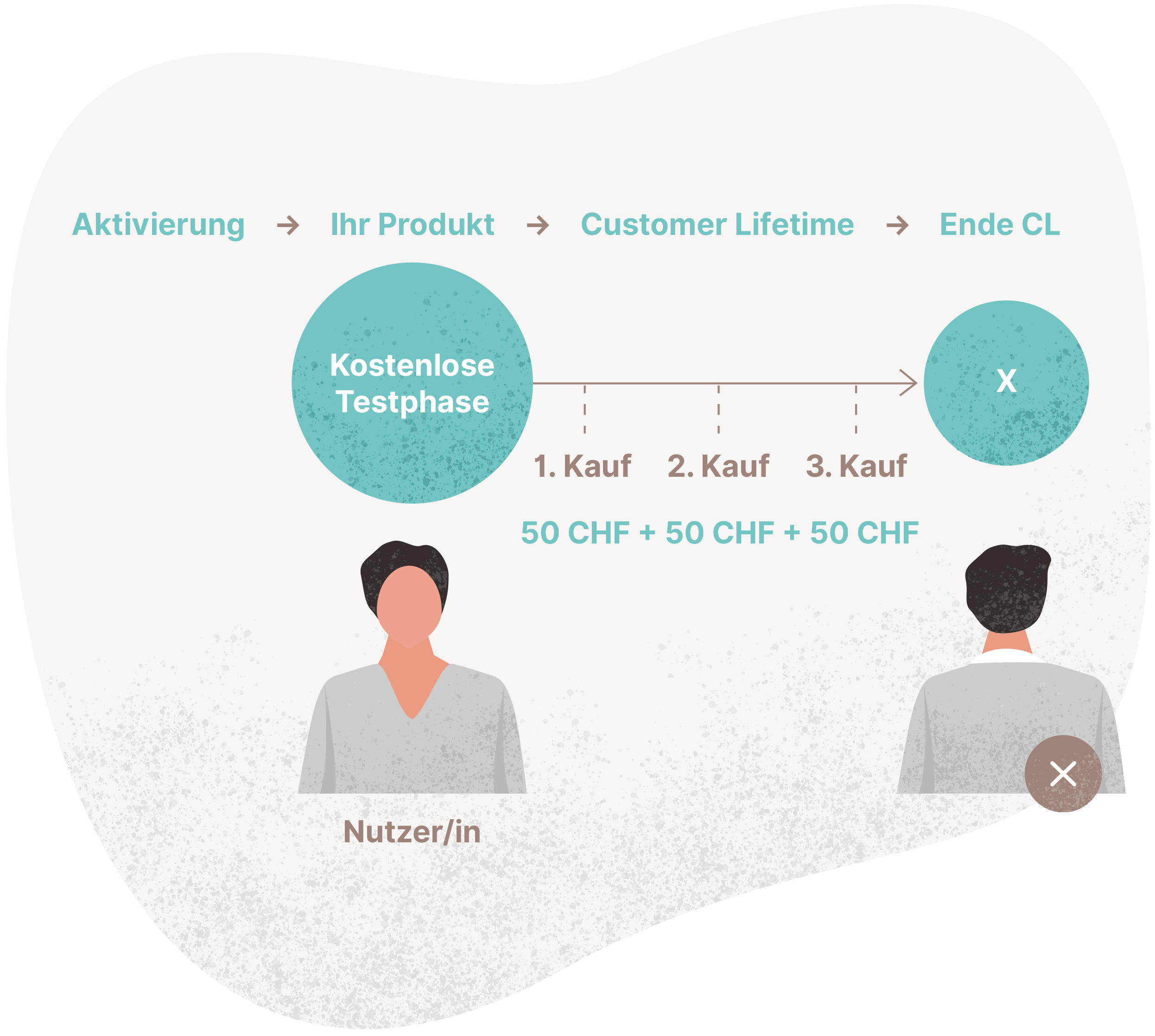 Nehmen wir das einfache Beispiel eines Kunden auf einer E-Commerce-Website, der online ein Paar Schuhe bestellt. Kunden auf der Plattform haben eine erwartete Bindungsdauer von zwei Jahren. Die entsprechende Zielgruppe des Händlers neigt dazu, etwa dreimal pro Jahr Schuhe zu bestellen. Bei einem durchschnittlichen Bestellwert von 50 Schweizer Franken liegt die Gewinnspanne des Unternehmens für diese Art von Käufen bei etwa 25 Prozent. Anhand dieser Informationen können wir den erwarteten CLV des Kunden berechnen: 2*3*50*25 Prozent = 75.